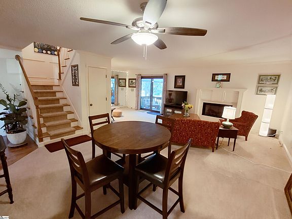Welcome to 4 Creekside Way – Golf Course Living in Taylors Set along the scenic 7th hole of Pebble Creek Golf Course, this charming 3-bedroom, 2.5-bath townhome blends comfort, convenience, and character in a quiet, well-kept community. Step onto the inviting front porch and into an open floor plan featuring a spacious living room with a cozy gas log fireplace. The kitchen includes pocket doors for added privacy and flows seamlessly into the dining area. Upstairs, the primary suite offers a walk-in closet, full bath, and private balcony, while two additional bedrooms and a guest bath complete the upper level. The main floor also includes a laundry room, half bath, and storage space. Out back, a private porch overlooks the fairway—ideal for entertaining, birdwatching, or simply enjoying the peaceful surroundings. Residents enjoy a friendly neighborhood, quiet evenings, and a low $180/month regime fee. Visiting golfers will appreciate easy access to Pebble Creek and all the generously donated golf balls that sprout in the backyard like mushrooms! Located less than 20 minutes from downtown Greenville, Travelers Rest, Greer, and the State Farmer’s Market, this is a rare opportunity to enjoy golf course living in one of the Upstate’s most sought-after areas.
