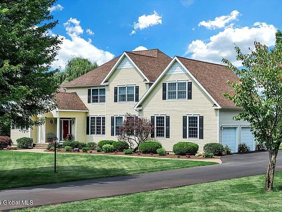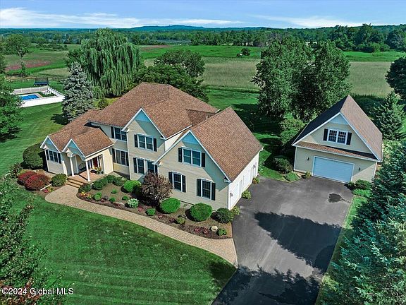 Open House Sunday 12 -2 p.m. Custom-built Colonial, nestled on 1.38 private acres in a quiet neighborhood. Boasting breathtaking mountain views, this home features a lavish first-floor primary suite, gleaming hardwood floors, and a spacious office with a Murphy bed that could easily double as a bedroom. The second-floor executive office is large enough to transform into a great room or additional bedroom suite. Enjoy the comfort of Navian instant hot water, finished basement, hot forced air, central air, and radiant floors. With 4 bedrooms + spacious office, 3.5 baths, a large mudroom, and laundry room, this home also falls within the award-winning Maple Hill schools district. 4 car garage( 2 car garage attached and there is additional oversized 2 car garage.) Hot Tub & Generator As Is.