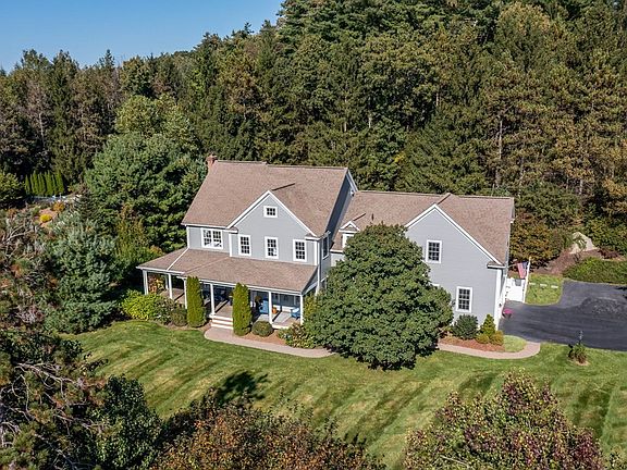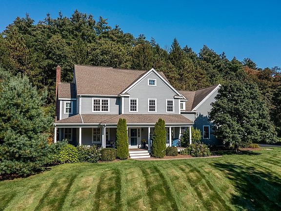 Nestled in a picturesque setting, the essence of farmhouse charm is beautifully captured in this home's inviting wrap-around-porch- offering tranquil space for morning coffee. Beyond the welcoming 2 story foyer lies a tapestry of refined details from a gourmet kitchen w bump-out eating area, beverage center & walk-in pantry to the lg FR w fireplace flanked by custom built-in seating/window benches. Sunny, spacious 5th bedrm/bonus rm has separate stairwell & offers versatility. It's currently being used as office/art haven. Retreat to primary suite & luxuriate in the remodeled bath featuring a soaking tub, exquisite tile shower, custom cabinetry & heated tile floor. Embrace the private backyard oasis, boasting a 3-season sunroom w cathedral shiplap ceiling, majestic flr to ceiling stone fireplace, 4-season plunge pool, stone patio, deck, outdoor shower & treehouse. Moments from scenic trails, Hopkinton Country Club, Hopkin State Park & Commuter rail. Hopkinton school ranked #1 in state