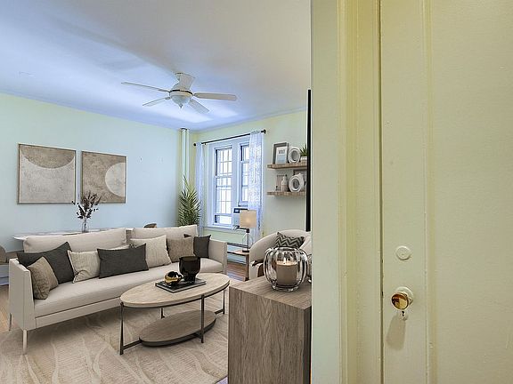 Step inside to an entry foyer w/ coat closet and beyond to a spacious living room w/ plenty of floor space to accommodate a formal dining, home office or other additional area of use. From this room lies the option to open up the floor plan and combine the kitchen and living room areas w/ the removal of a shared wall. Otherwise, a hall to the rest of the apartment shows off all its pre-war charm w/ a built-in floor/to-ceiling pantry, an arched built-in wall shelf and another closet w/ a full-height, novelty floor-to-ceiling door as a special highlight. A nice-sized, windowed kitchen that currently offers a coveted eat-in area (and/or flex spade) and an XL window w/ plenty of countertop space and cabinetry is a pleasure to cook in. Back in the hall and beyond the kitchen you’ll find a spacious, updated, windowed bathroom w/ shower/tub combo. And finally, a good sized corner bedroom w/ dual window exposures lies farthest from the front door for max privacy and true serenity away from the hustle and bustle outside. Other special highlights include gorgeous original wood floors, high ceilings, crown moldings, original brass hardware and much more… This is a rare, max value opportunity in one of THE most prestigious, sought-after buildings in FH Garden… don’t miss your first chance to see it.