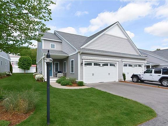 The Residences at Stillwater Cove is a serene & picturesque neighborhood. This 4 ½ y.o. duplex/condo offers one level living, 2 BR & 2 full baths blending convenience & luxury. Open floor plan features cathedral ceilings & LED lighting throughout, creating an inviting space, perfect for entertaining. Kitchen w/ large island seating, granite counters & upgraded Frigidaire Gallery SS appliances. Adjacent to the dining area, the spacious LR includes a zero-clearance gas fireplace w/ blower, adding warmth & ambiance during fall & winter. Custom HunterDouglas window treatments & new NormanUSA slider Plantation shutters, allow for natural light & privacy. Ensuite Master BR features a walk-in closet & a coffered ceiling. Hardwood oak flooring & upgraded tile in the BRs & laundry room. Full utility closet in the laundry room & a pantry off the kitchen for ample storage. The 1,300+ sq. ft. full basement w/ high ceilings is an easy finish for even more space. Perfect for a media room or home office(s). 2-car garage w/ built-in workbenches & 15 cabinets for more storage & organization. The private paver patio area gets morning sun & is great for gatherings & grilling. Low condo fee covers prof. landscaping w/ irrigation, snow removal & ext. maintenance. Come appreciate the lush common areas & access to Stillwater Pond w/ canoeing, kayaking, & fishing. Adjoining Stillwater Scenic Trail offers approx. 5 acres of scenic walking paths. Exceptional home in a desirable pet friendly community!