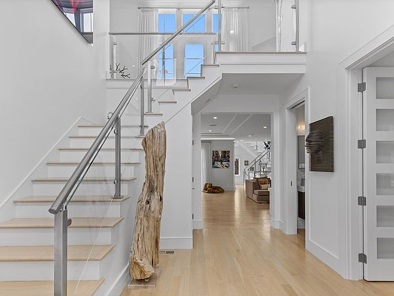 Tucked away at the end of a cul de sac in the highly sought after Dana Hall neighborhood sits 4 Dewing Path; a modern yet contemporary architectural master work. The main level boasts an impressive chefs kitchen w/ both SubZero & Wolf appliances, which anchors the homes sprawling open floor plan. A spacious living room invites you to relax w/ a cozy gas fireplace & custom built ins, while a secluded office gives you space to work from home. Upstairs, each bedroom features dramatic vaulted ceilings. A grand primary suite features a gas fireplace, 2 large walk in closets, a lush en suite bathroom, & a balcony. The fully finished lower level offers a home gym, surround sound, wine room, & a rec. room large enough to be your home theatre. Outside, enjoy the fresh air from your oversized farmers porch, or the expansive rear bluestone patio w/ outdoor kitchen and fire pit. 3 car garage, radiant heated floors (1st level + garage), top tier finishes; this home is a must see!