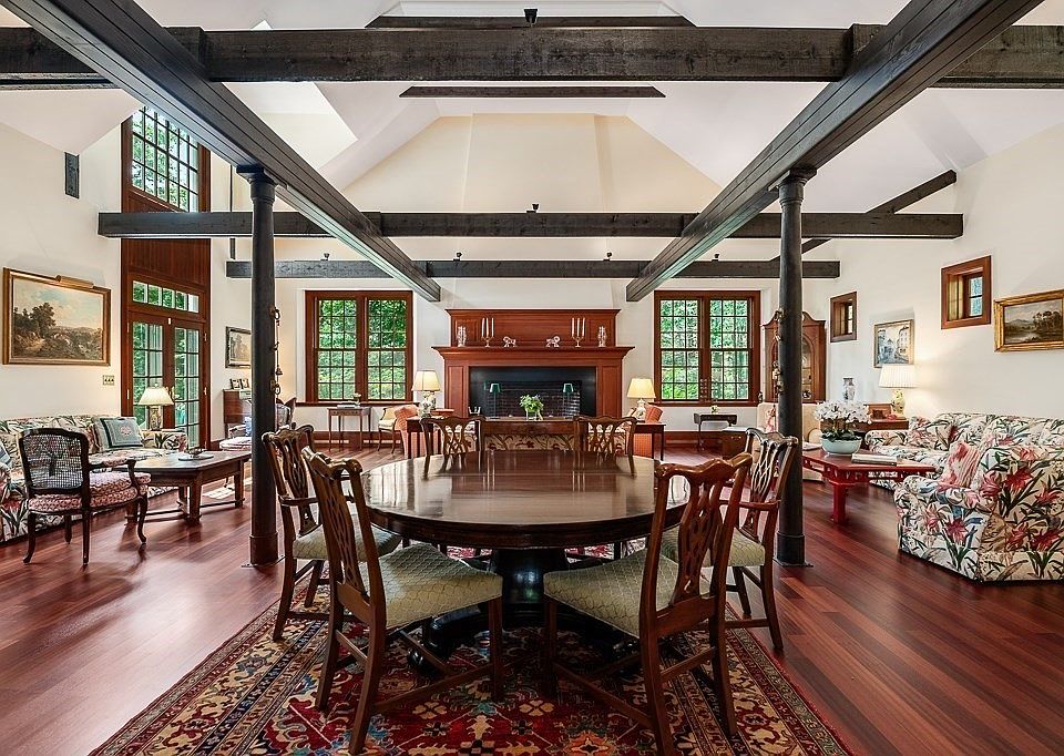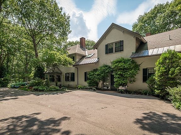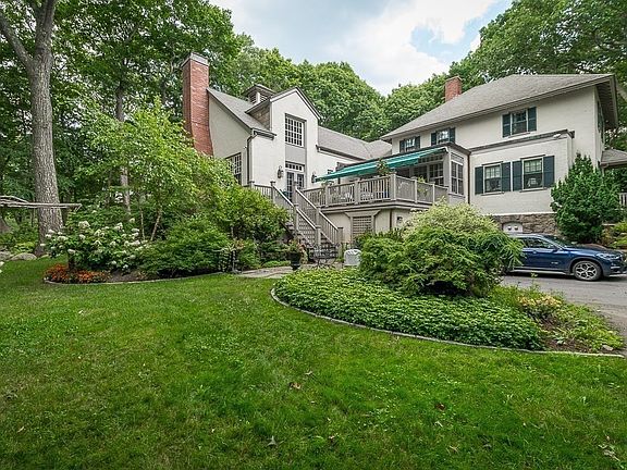 A true carriage house converted over time to a charming character-filled home nestled in lush gardens in a private enclave. The spectacular 2-story beamed great room has radiant heat, a grand fireplace and many gathering spots. A cozy fireplaced library, 3/4 bath and central entry hall with original stall doors hiding a wet bar and coat closets creates an amazing space. The formal spacious dining room flows into the sunny kitchen/family room with french doors to a deck with shade awning overlooking the gardens and meandering pathways. First floor bedroom with ensuite bathroom. Upstairs 2 quaint bedrooms share a renovated bath. The sitting room connects the skylight office area & a glass balcony space with spiral staircase access to the great room and leads to the primary with its carriage house feel of beadboard and ceiling nooks. Ensuite primary bathroom has an architectural plan for future upgrade. Nearby walking trails on over 160 acres of conservation land! A unique offering!