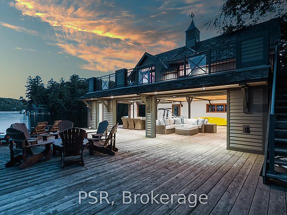 Experience the pinnacle of Muskoka luxury at Stormy Point on Lake Rosseau - one of the region's most exclusive and rarely offered enclaves. Situated at 4 Ditchburn Drive, this exceptional property presents a once-in-a-generation opportunity. With only four cottages on this private point and no availability in over 20 years, this is truly a rare find. Set on over 2 acres with 433 feet of pristine shoreline, the timeless 5,000+ sq. ft. cottage offers 5+1 bedrooms and 7 bathrooms, designed with uncompromising attention to detail. Soaring two-storey ceilings and a dramatic central cut-stone fireplace anchor the grand open-concept living area, where floor-to-ceiling windows frame breathtaking lake views from every angle. The kitchen features a large centre island with seating and its own fireplace, flowing seamlessly into the inviting Muskoka room an ideal space for relaxed entertaining in any season. A private master wing includes its own fireplace, walkout to a stone patio, and a beautifully appointed spa-like ensuite. At the waters edge, a stunning two-storey, double-slip boathouse offers south and southwest exposure, capturing iconic Muskoka sunsets. Complete with indoor and outdoor living areas, a rooftop deck, bedroom, 2 bathrooms, and a kitchenette, it's a showpiece for lakeside entertaining. Additional features include a 2-car attached garage and beautifully landscaped grounds that offer privacy and tranquility. This is more than a cottage its a legacy property, where unforgettable memories are made and passed down through generations. An unmatched retreat on Lake Rosseau.