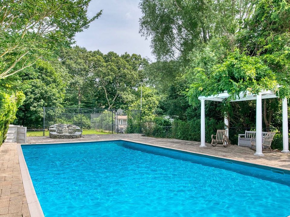 Located on Dock Road in Remsemburg, this modern, 4 bedroom, 3 bath home features eat-in kitchen, living room, formal dining room and finished lower level. Master suite is located on the first floor with French door opening to deck. Property includes garage, heated pool, tennis court, and separate guest cottage all on shy 2 acres conveniently between ocean beaches, shops and restaurants.