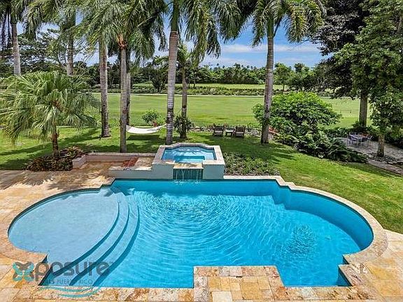 1 of only 10 homes in the exclusive Dorado Beach East community, that occupies an enviable location alongside the East Golf Course. With mesmerizing views of the fairways & partial ocean views, this contemporary residence sits in a beautifully landscaped 2,016 sq.m. lot & boasts approx. 6,700 covered sq.ft. The interior offers a grand foyer entrance, double living room with 20' ceilings, formal dining room, large family room & newly remodeled gourmet kitchen. All rooms are enhanced with floor-to-ceiling glass doors. This impeccably designed home consists of 6 bedrooms en-suite, 8.5 baths, maid's room, 2-car & golf cart garage. The master suite includes private terrace, dual walk-in closets, private office & spa bath with sauna & outdoor shower. Outdoor living consists of pool, wet bar & tropical gardens; the perfect setting for relaxing and outdoor entertaining while enjoying the stunning, uninterrupted golf course vistas and the refreshing northeasterly breeze..