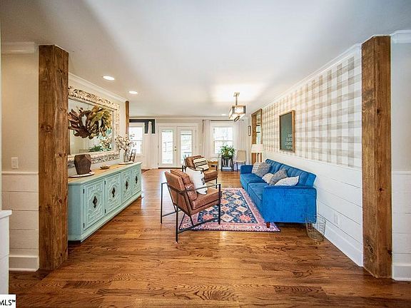 Welcome to Dove Tree! This well established neighborhood in the heart of Greenville is stunning. Everything you need is minutes away as you have quick access to 85, 385, Pelham Road and Woodruff Road. This brick ranch has been fully renovated. The exterior has been limewashed and low maintenance landscaping has been added. There is also has a whole yard irrigation system. Step in the double front doors to the foyer and sitting area. The dining room has beautiful trim and the kitchen overlooks the large great room. The large kitchen features granite counters, farm sink, custom wood range hood, island, recessed lighting and stainless steel appliances. The half bath is conveniently located off of the main hall near the garage entry and mudroom bench with lockers. Hardwoods have been installed in all of the main living areas as well as the master bedroom and walk in closet. The master en-suite features a dual vanity, freestanding tub with floor mounted tub filler and a 5' fully tiled shower with dual shower heads. The three additional bedrooms are down the hall as well as the second full bath featuring subway tile, dual sinks and trim. Two sets of French doors lead to the 45'x15' stamped concrete patio. The patio features a sitting wall and two pergolas. Gas has been stubbed for a gas grill and irrigation has been ran to the bay window for easy upkeep. The tree house / playset features 2 bunks and plenty of space inside for fun and games. A wrap around deck allows for hours of fun as well as space underneath for swings and climbing ropes. The back yard is fully fenced. Roof installed 2017 Water Heater installed 2018 Insulated Garage Doors installed 2018 HVAC installed 2018 Property is owned by listing agent