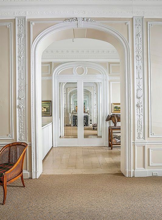 This one-of-a-kind apartment reveals a spectacular grand parlor/living room with soaring 12-foot ceilings, intricate moldings and millwork, arched doorways, and an ornate decorative fireplace that speaks to timeless craftsmanship. Adjacent is a luminous sitting room with a coffered ceiling and wet bar, offering the perfect space for intimate conversations or quiet study. Mirrors have been artfully placed to amplify natural light, ensuring the living spaces remain beautifully bright throughout the day. The tranquil primary suite, with a modern granite bath, completes the upper level.