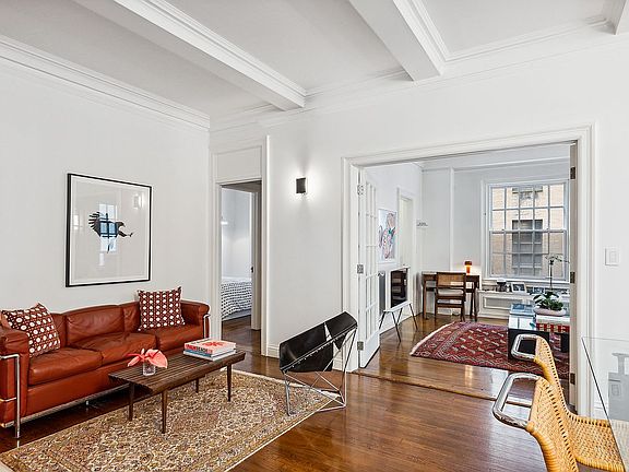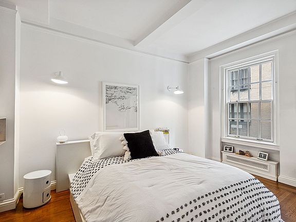 Apartment 5D epitomizes the building -- it's both gracious and intimate!  Walking into the foyer, one is greeted with a sense of quiet serenity as the apartment opens.  The Living Room sits in the center of the home flanked on one side by the windowed renovated Kitchen outfitted with bespoke cabinetry, high-end appliances, and crisp white marble countertops, and on the other side, by the Bedrooms with their beautifully refinished plank flooring and their corner positionality offering three exposures between them.  Throughout the apartment, the ceilings are high, the moldings are lovely, and the aesthetic is chic!  The apartment has been beautifully renovated and restored using natural, simple, and classic finishes.