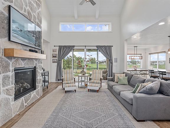 Welcome to this luxury custom home situated on the Sleepy Ridge Golf Course in Vineyard, which every detail is executed to perfection. The oversized, cozy front porch, complete with a swing, invites you to relax while enjoying breathtaking views of the lake and endless sunsets. Upon entering the home, you are greeted by a relaxing front room with a fireplace, opening up to the kitchen and dining room where you will find the modern conveniences; a butler's pantry, beautiful custom cabinetry and countertops. The dining area has views of the majestic Wasatch Mountains in the background. This house truly makes you feel like your own five acres of land but without the upkeep! The primary bedroom suite, with an attached office or nursery, is a private and serene space for ultimate relaxation. The second story features 2 bedrooms and one bath with an amazing family room and more incredible views from the large picture window overlooking the lake. The basement is an entertainer's dream, featuring a walk-out basement, a large family room, where you can gather with family and friends to watch your favorite movies or play games. You will love the extra large basement storage room. The oversized, covered deck and patio accomodate large gatherings with plenty of seating and a hot tub. If you thought it couldn't get better, it does. An ADU is included, featuring one bedroom, one bath, a kitchen, and a family room. This space is finished with the same exquisite taste as the main home. To complete this dream home is a shop, perfect for an hobby enthusiast or any kind of creating. In case of a power outage, the home also includes automatic gas fed generator. This home, along with the beautiful outdoor space, is truly one of a kind. Call to see it today. Square footage figures are provided as a courtesy estimate only and were obtained from County Records. Buyer is advised to obtain an independent measurement.