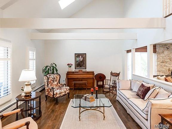 Lovely centerhall colonial with contemporary flair located down a quiet lane.. Spacious living spaces, gorgeous eat-in-kitchen with 6 burner gas range, double oven, SubZero fridge, granite counters, center island and radiant floor heat. Gorgeous master suite with lots of storage and stunning master bath. Skylights, hardwood floors, and beautiful details. Wrap-around porch, spacious deck, beautiful landscaping with 6 person hot tub. Inground sprinklers and landscape lighting. Just a stone's throw from a lovely deeded beach.