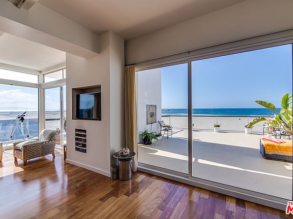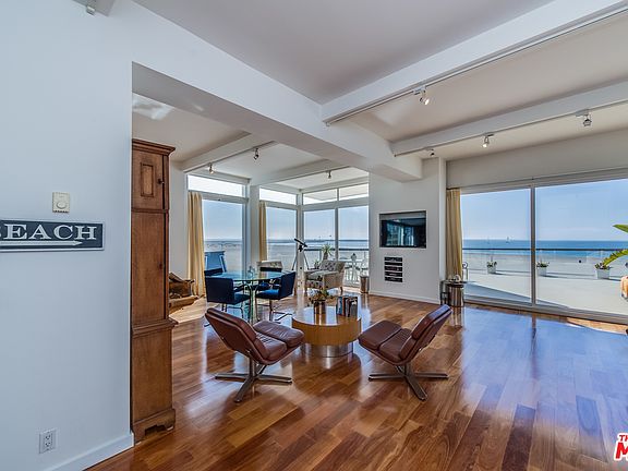 Incredibly Wide Ocean Front Corner Penthouse with a one of a kind 400 square foot balcony, high ceilings, hardwood floors, and beautiful upgrades throughout. This unit boasts one of the largest and spectacular living rooms on the beach with a stunning wood burning fireplace. The gourmet kitchen is outfitted with caesar stone counters, stainless appliances, and custom wooden cabinetry with many thoughtful details and open to the living room. This condo comes with a huge private storage room, side by side parking, Bicycle room, and other unique amenities. Walking distance to all of the best of Silicon Beach!