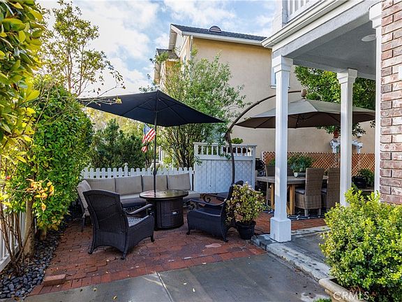 Fall in love with this beautiful, turnkey home nestled within the tree-lined community of Arborage in picturesque Ladera Ranch. This lovely home offers a timeless brick exterior with lots of frontage and side yard for entertaining. As you enter from the front porch you are greeted with beautiful wood grain tile flooring, crown moulding and wood blinds. The kitchen has premium finishes such as quartz counters, glass tile backsplash, upgraded cabinets with lighting & glass doors, and stainless steel appliances. Entertaining your guests is made easy with this home’s layout. The living room, perfectly located right off the kitchen features a cozy fireplace, and the dining room is centrally located to host an intimate get-together with friends and family. Upstairs you will find the primary bedroom boasting a large balcony, a cedar lined closet and granite counters in the bathroom. Other features of this home include a newer A/C, tankless water heater, 2 whole house fans, Casablanca ceiling fans, Panasonic whisper fans in bathrooms, energy saving UV window film and a water softener. The home is complete with a 2-car garage, overhead garage storage, and carpeted floors upstairs tile flooring downstairs. Ladera Ranch is recognized as one of the most family-friendly communities in South Orange County. Some of the amenities you can look forward to would be the widely recognized Ladera Aquatic park, several other pools (four within walking distance), disc golf course, resort-style clubhouses, skate park, tennis courts, hiking/biking trails offering breathtaking views and endless amounts of outdoor activities! You are also walking distance to the award-winning Oso Grande Elementary school.
