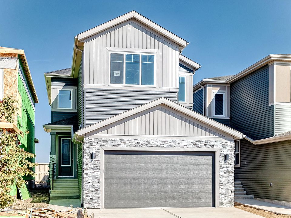 Welcome to Erin Ridge North! This home features a main floor den/bedroom with a full bath, mudroom with bench and hooks, walk-through pantry, beautiful 2-tone kitchen, dining room, and an open to above living room with a stunning stone look fireplace feature wall. On the second level you have 3 bedrooms with 2 full baths, bonus room with an arched entry way and laundry room with a sink. Side entrance with option to finish a legal basement suite. Upgrades include 8ft doors throughout, MDF shelving, jetted shower in primary ensuite, upgraded lighting, feature walls, and rear concrete pad.