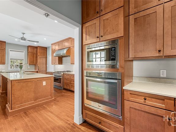 Gracious formal living and dining rooms are complemented by hardwood floors throughout and a thoughtful layout designed for both everyday living and entertaining. The updated kitchen is well equipped with high-end appliances and is supported by a scullery and secondary prep area, providing exceptional functionality. The primary suite features a walk-in shower and a soaking tub set within its own alcove, creating a quiet retreat.