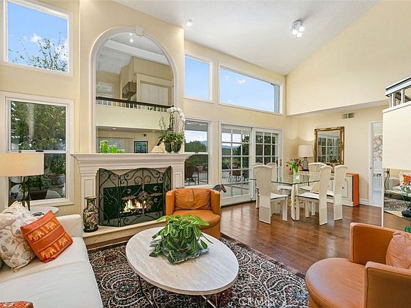 Come home to your resort-like retreat in one of Irvine’s most desirable neighborhoods. Step out onto your large terrace and take in the breathtaking views of the mountains, lake and Strawberry Farms Golf Club. Relax, listen and watch nature pass by. Close and open your eyes and you will think you are in Tuscany. Situated on a short cul-de-sac, your home looks out to open landscaped mature trees and plantings. You are a quick stroll over to the secluded pool and spa. Step through your double door entry and delight in the hardwood floors covering the entire first floor and staircase. Cathedral ceilings and recessed lighting are additional features. The dramatic living room includes an impressive fireplace and mantle topped by a designer mirror. Adjoining the living room is the dining room area. Both have floor-to-ceiling windows with views to the terrace and beyond—and plenty of natural light! Off the entry is a guest bath; turn the other direction and pass by a built-in bar and a laundry room. A custom-designed glass barn door leads you to a totally remodeled kitchen with top-of-the-line appliances, a farm sink, and a breakfast room with direct access to the terrace and views of the garden and beyond. This spacious 2 bedroom and 2.5 bath home has an open second-floor area that can be used as a den/office. It comes with custom California Closet built-in his/her desks and wall-to-wall bookshelves, The primary and guest bathrooms are en suite and have been remodeled and include California Closet systems. The primary bath has a skylight and the guest bath features a large fan-designed window to allow plenty of outside light. All upstairs rooms have plantation shutters and carpet. The primary suite also has dramatic views of the mountains and the water. Sit back, read a book and enjoy the views! The 2-car attached garage has epoxy flooring and custom designed California Cabinets throughout for extra storage. Close to the UC Irvine campus, top-rated Irvine schools, Newport Beach and the Pacific Ocean. Healthcare, libraries, recreation, cultural and shopping destinations are all near as is major freeway access and The Toll Roads.