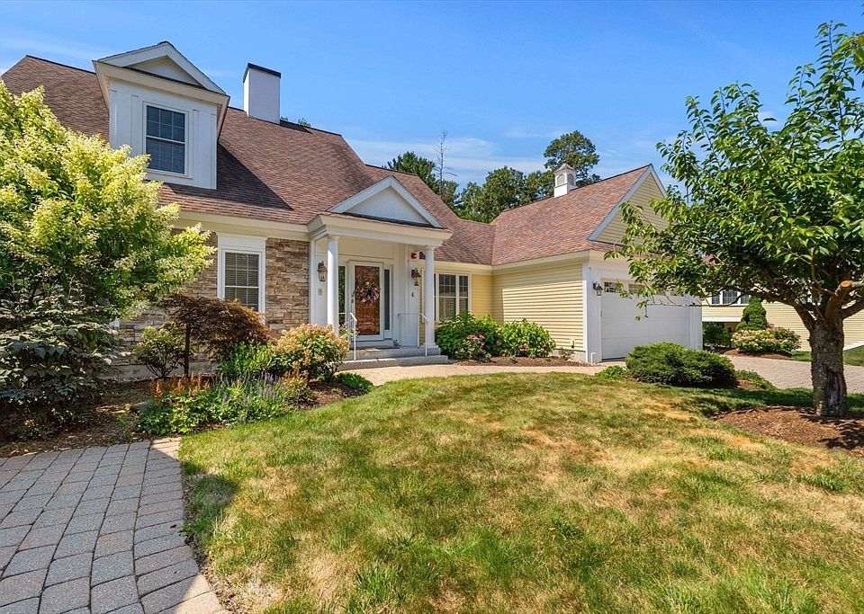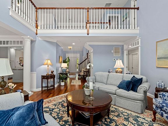 Experience luxury living in this beautiful 55+ English Commons townhome. A grand two-story foyer welcomes you into the elegant living room with gas fireplace and cathedral ceiling and large dining room with custom built-in china cabinet, perfect for entertaining. The gourmet kitchen features custom cabinets, granite counters, wall oven, pot filler, and breakfast nook with a coffered ceiling. Bring the outdoors in with vaulted sunroom and sunny deck. The 1st floor primary suite offers his & hers closets, deck access, and a spa-like bath with double sinks, tiled shower, and soaking tub. Cherry hardwood floors, crown molding, and refined finishes throughout. Upstairs offers a loft/home office and guest suite with private bath. The finished lower level adds an oversized family room with fireplace, wet bar, half bath, and patio. Upgrades include burglar alarm, Sonos speakers, and plantation shutters. Enjoy the clubhouse, inground pool & fitness center, close to shopping and highway access.