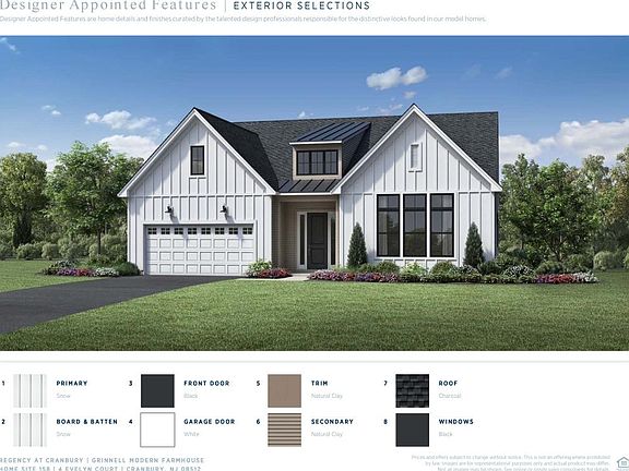 Available early 2024! Brand new development! This is an 55+ community. Experience a desirable blend of luxury and charm at the expertly designed quick move-in home. This one-story Grinnell Modern Farmhouse has an open-concept living level centered around the well-appointed kitchen which features a center island with accompanying breakfast bar, wraparound counter and cabinet space, as well as a walk-in pantry. Secluded off the foyer, the charming primary bedroom suite is defined by a generous walk-in closet and spa-like primary bath featuring a dual-sink vanity, a large luxe shower with seat, linen storage, and a private water closet. Additional highlights of this home include a sizable flex room, thoughtful workspace, spacious secondary bedroom, and convenient centrally located laundry. This low-maintenance community has lawn care and snow removal provided, plus incredible resort-style amenities. Discover what luxury living truly means and schedule an appointment with the Sales Team to learn more about this beautiful home. Showings start 11/6/23 by appointment time only. Please call sales office to schedule.