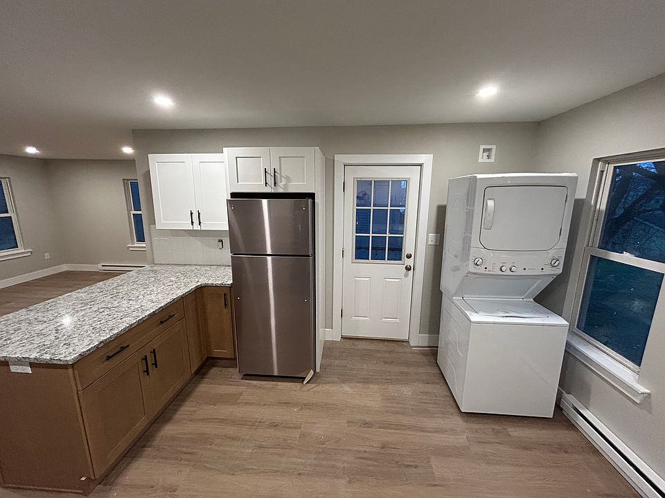 Step into this fully redone 2-bedroom apartment, thoughtfully updated from top to bottom. Enjoy brand new vinyl flooring, all new stainless steel appliances, fresh kitchen cabinets, a newly renovated bathroom, and granite countertops with room for seating,. Relax outdoors on the your front deck, or unwind in the privacy of your own back balcony. The back balcony looks over a spacious fenced in backyard, perfect for pets and small gatherings.