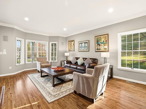 Michelle Estates: Welcome home to this Classic 4-bedroom Center Hall Colonial situated on a beautiful level lot with an inviting rocking chair front porch located on a quiet cul-de-sac. Inside you'll find a spacious and thoughtfully designed layout featuring a formal living room, a formal dining room and an updated kitchen with stainless appliances, center island, ample cabinetry and breakfast area. Adjacent to the kitchen is a fabulous family room with high ceilings, fireplace, back staircase, access to laundry room and door to private deck over looking bucolic level back yard perfect for gardening, relaxing and playing. A den/home office adjacent to a full bath is an added main level feature. Upstairs the spacious primary bedroom includes an en-suite bath and large walk-in closet. Three additional bedrooms and hall bath with access to back staircase complete the second level. The fully finished lower level with CO offers a versatile space perfect for a media room, home office, exercise area or recreation room. A full size sliding glass door from lower level opens to the yard providing an easy access to outdoors. This walkout lower level is both functional and flexible- a true extension of this home. Located in a sought after neighborhood this special home offers a safe and quiet setting just minutes from schools, parks and local amenities-a true gem for anyone seeking suburban serenity. Award winning Katonah/Lewisboro Schools and minutes form Ward Pound Ridge Reservation for miles of hiking trails .An added bonus is a full house Generac generator it keeps you comfortable and connected!
