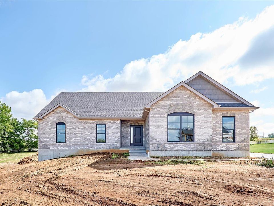 Luxurious living in a quiet country setting on an almost 2 acre lot! Brand new custom built home includes brick & stone elevation, over 3400sf of living space, side entry 3 car o-sized garage, 4 bed, 3 bath, open floor plan concept home. Stunning 9 & 10 ft ceiling heights & beautiful wood floors featured throughout main level. Enjoy bright great room w/floor to ceiling windows, vaulted ceiling, brick & stone fireplace & open staircase. Custom chef's kitchen features granite counters, 42" staggered cabinetry w/crown molding, SS appliances & breakfast room. Master suite features floor to ceiling windows, walk-in closet, custom floor to ceiling tiled shower w/dual heads, soaking tub, dual sink vanity & recessed lighting. Large patio overlooking backyard for your outdoor pleasure & entertaining. Finished walk-out LL w/9ft pour, bedroom, full bath & large rec room area w/windows. Just 15 min to Troy & approx. 30 min to Wentzville. Seller offering $10K credit in seller paid closing costs.