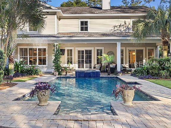 Situated on a spacious .75 acre lot in the sought-after community of Windmill Harbor, this custom-built 5 bedroom, 4.5 bath home offers exceptional craftsmanship, an open, functional layout and Lowcountry charm. The main living area features soaring 20-foot ceilings with abundant natural light, complemented by 10-foot ceilings throughout the first floor and 9-foot ceilings upstairs enhance the sense of space throughout. The chefs kitchen is designed for entertaining and everyday living with high-end appliances, double ovens, and ample counter space. Additional highlights include a three-car garage with generous guest parking and an unfinished space above the garage ideal for a future guest suite, home office, or flex space making entertaining effortless. Outdoors, a private saltwater pool serves as your own spa-like retreat, complete with heating for year-round enjoyment. Every detail of this home reflects thoughtful craftsmanship and quality, from the generous layout to the custom finishes. Set within the gated community residents enjoy a premier lifestyle with access to amenities, stunning water views, deep water harbor and the serenity of one of Hilton Heads most cherished neighborhoods leaving you perfectly placed between the best of downtown Bluffton and the beaches of Hilton Head. Owner is SCLREA.