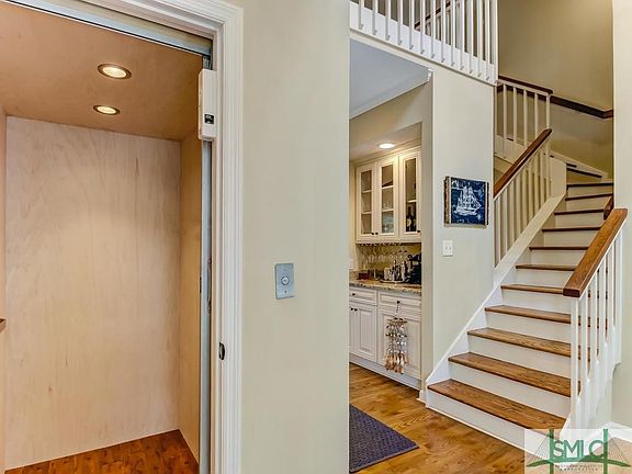 Nestled amongst live oaks and palm trees, this beautifully updated classic low country style home is positioned to take advantage of the expansive Eastern Marsh and water views as well as the green of the 13th hole of the Marshwood golf course. The home features abundant natural light, high ceilings and hardwood floors and overall plentiful space for a couple or a family. The open floor plan on the main living level boasts a fully renovated Kitchen with custom cabinetry and is open to the Family Room and Breakfast Nook, in addition to the screened porch and covered porch. All allow one to enjoy the stunning views. The Main level also features a Master Bedroom Suite with a connecting room that could serve as an additional bedroom or an Office. The second floor features 2 large Bedrooms, a bathroom and shared common space. The ground floor is built out and has its own entrance with elevator to main. This room could be a Bonus/Rec Room, Playroom, Extra Bedroom or a large home office. House had complete renovation in 2019. This included landscaping.