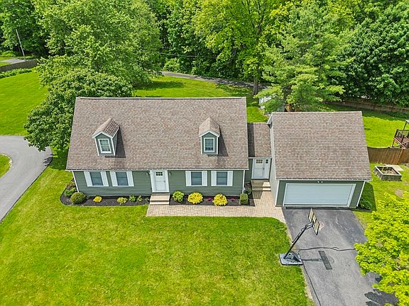 Expanded cape located in a desirable cul-de-sac near Berkshire Hills Country Club! The home features a heated 2-car garage with recently done epoxy flooring. The garage leads to the mudroom with two closets. Upon entering you will love the open floor plan! The kitchen has with quartz countertops and stainless appliances. The dining area opens to the deck, overlooking the expansive backyard. The yard has a shed, swing-set and a separate fenced-in area! This gorgeous home also features1st-floor primary bedroom with his & hers closets and primary bathroom with jetted tub. The 1st floor also has an additional full bath. Upstairs you will find 2 large bedrooms and bathroom with walk-in shower. The finished walk-out basement has a separate thermostat, and offers additional living space, with a 4th bedroom, family room, laundry room, custom-built bar , utility room and storage area. There is a convenient central vacuum, also available in the garage! This lovely home is located just a few minu
