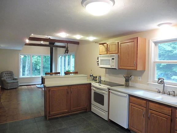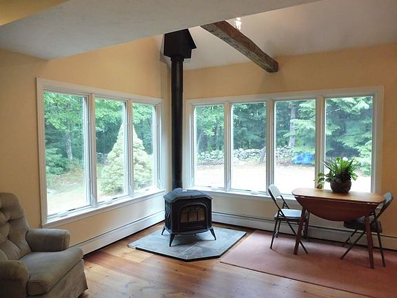 Peaceful and private three bedroom Saltbox perfectly placed on 2.65 acres. Spacious kitchen with breakfast bar, solid counter tops, Family room offers cathedral ceilings and wood stove overlooking mature landscaping and stone walls. Lofted area on 2nd floor. Large updated full bathroom with tiled shower / tub and double sink vanity. Wood floors throughout most of house. Central A/C, central vacuum, security system. Shed and separate barn with two stalls. Underground utilities. Some improvements include windows (2008), roof (2013), exterior painted, new chimney (2014). Dead end road.
