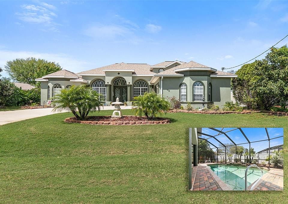 Come view this well cared for custom built block pool home. As you enter thru the beautiful front door, staight ahead looking thru the sitting room you will have a view of a custom pool with it's screened in covered lanai. Surrounded by tasteful landscaping. This could be your own private oasis to entertain friends or relax in at the end of the day. Then to your right is a formal dining room, which could be used for many other things, piano room, bar room library etc. To your left is a home office with French doors. On one side of the split floor plan is the generous sized primary suite with two walk in closets and sliders to the pool. You will be delighted by the taste full primary bath with a gorgeous tub Next you will be fall in love with the stunning cooks/entertainers dream kitchen with large wrap around breakfast and a breakfast nook. You have another view of the pool from the open floor plan great room, which features the living room and dining room. *Down a short hallway is a second bedroom and full bath. * Down the hallway leading to the over sized garage with storage is a large storage room/pantry and a separate laundry room. Head up stairs to the private guest suite with a private path and walk in closet . This room could also be used as a gym, office, media room. head out side Located close to shopping, restaurants and the intercostal and the beach. This home was custom built with workmanship and quality throughout, very seldom seen at this price point.