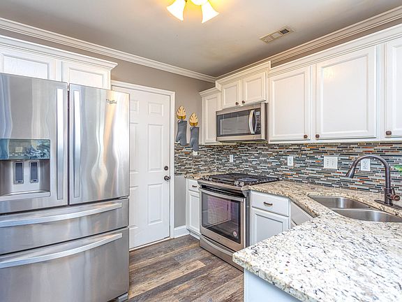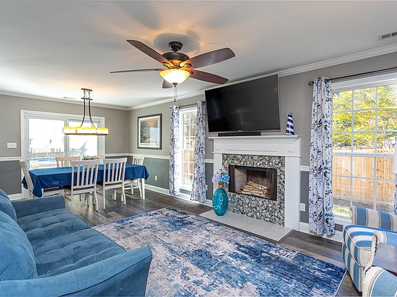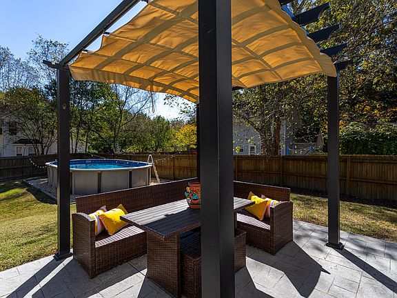 Your next chapter begins in this Durham home with an above-ground salt water pool situated on a cul-de-sac. The fenced yard includes a patio with pergola, firepit area, garden beds, and a flexible floorplan designed for comfortable living. The home features no carpet with durable LVP flooring and tile flooring in the bathrooms, all set on a slab foundation for easy maintenance. Bright living and dining spaces connect effortlessly around a tiled fireplace with natural light. A versatile flex room near the entry is ideal for a home office or sitting area. The kitchen features granite countertops, stainless steel appliances, and a sleek glass tile backsplash designed for modern living. Upstairs, the primary suite offers generous space with a walk-in closet and a tiled bathroom featuring a walk-in shower. Also on this level, a separate bathroom includes a charming clawfoot soaking tub set on patterned tile flooring. Two additional bedrooms provide flexible space for guests, hobbies, or workspace completing the upper level layout. Enjoy 2 pull down attic for easy access and storage. Step outside to a private fenced backyard featuring raised garden beds, a pergola-covered patio, a firepit area, and a refreshing above-ground salt water pool perfect for easy maintenance and summer enjoyment. A long driveway plus attached garage provide ample parking and storage. Conveniently located close to local parks, shopping destinations, and commuter routes, this home balances privacy with easy access to everything you need.