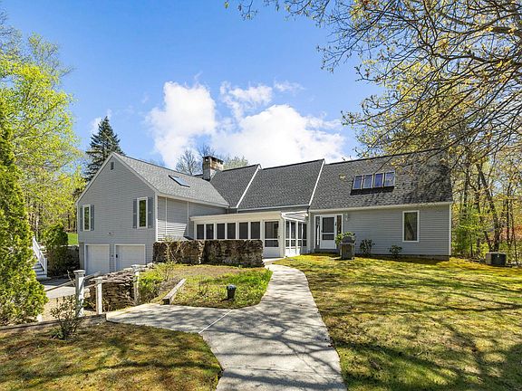 Welcome to your dream single-level Cape-style home in Windham, New Hampshire! This corner lot gem boasts an inground saltwater heated pool, a whole-house generator, and a new roof. Enjoy the tranquil courtyard and screened-in porch. Admire the fishpond gracing the front yard. Inside, revel in the open concept from the kitchen to the dining room, complemented by a double-sided stone fireplace soaring to vaulted ceilings. The unique family room features exquisite wood finishes. The primary bedroom offers convenience with a walk-in shower and closet. A two-car garage and potential finished basement await. Equipped with an electric chairlift, this property offers accessible single-story living. With three bedrooms and three bathrooms, this home is a rare find in an ideal location. (Agent related to seller).