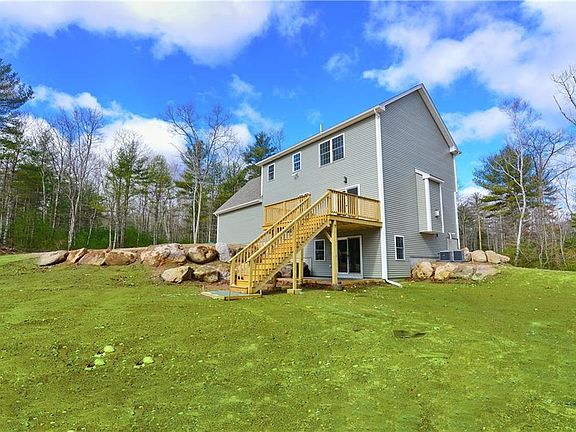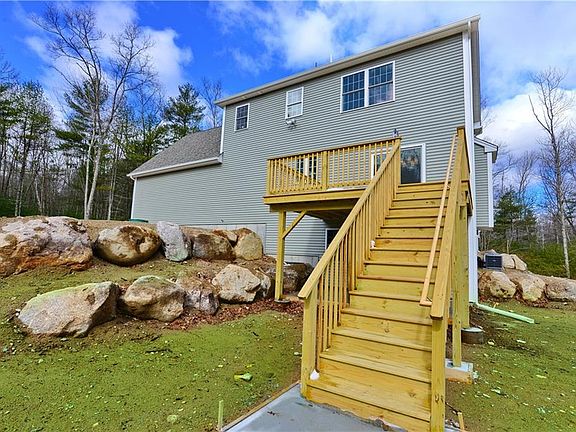 Stunning New Colonial home nestled in a private setting on 9 acres. This home is thoughtfully designed with an open floor plan combining modern elegance and traditional charm. The first floor features interior design elements such as a Spacious Kitchen with an expansive Quartz center island with seating for five, Walk-in Pantry, Dining Area, an inviting Living Room with gas fireplace and a bathroom. Upstairs offers the Primary En-Suite, 2 additional bedrooms, a 14x26 bonus room above garage (bonus room can be used as a 4th bedroom), full bathroom and a laundry room. This home is appointed with the finest finishes, including beautiful hardwood floors, custom lighting and crown moulding; adding a touch of sophistication and timeless beauty to every corner. The walkout basement is ready for a full bathroom, possible in-law or additional living space. Other highlights include: 4 bedroom septic system design, pristine artesian well with a proven capacity of over 45 gallons per minute and a Lifetime warranty on dry basement. This home offers quiet and privacy and is less than a 30 minute drive to Providence and Connecticut. Horses permitted. VA approved builder!
