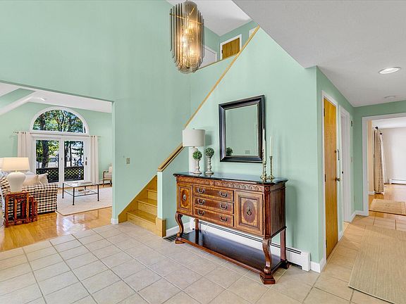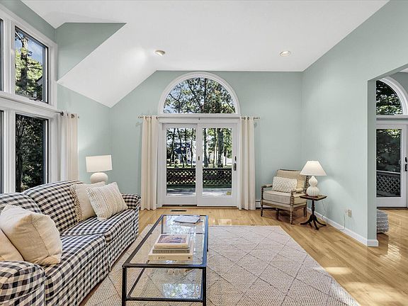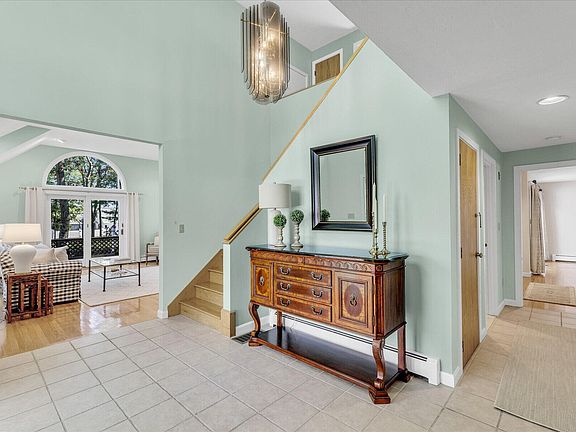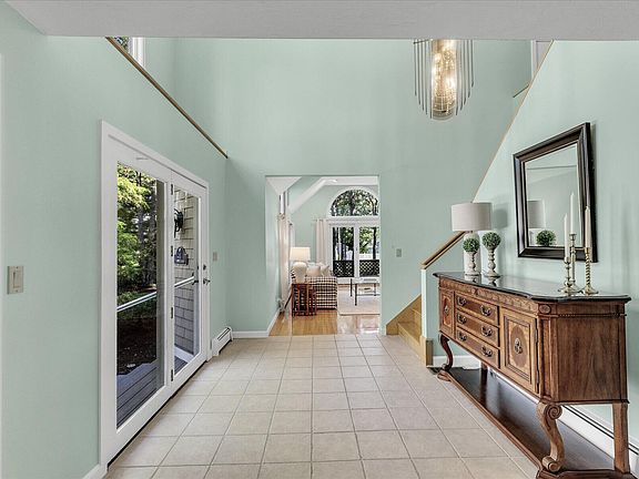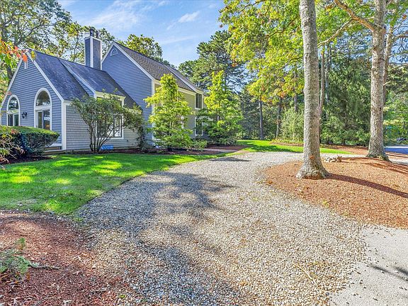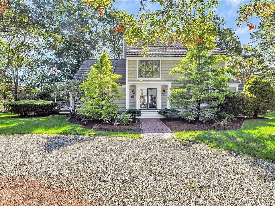 Welcome to this beautifully maintained 3-bed, 2.5-bath contemporary home on a corner lot in desirable John's Pond Estates. Step into the dramatic foyer with a soaring ceiling that sets the tone for the light-filled interior. The spacious living room features high ceilings, abundant natural light, and sliding glass doors that open to a deck with peaceful water views. A formal dining room flows into a well-appointed kitchen with easy access to the two-car garage. The first-floor primary suite adds convenience with an en suite bath, in-unit laundry, and private deck just steps from the outdoor shower. Upstairs, you'll find two generously sized bedrooms and a full bath, perfect for guests or family. The full-sized, unfinished basement provides ample storage space and the potential to be converted into additional living space. The level yard offers space to relax, garden, or entertain--all just a short stroll to John's Pond with its clear waters and association beach access. Whether you're seeking a year-round home, summer retreat, or investment, this property checks all the boxes in one of Mashpee's most sought-after neighborhoods.