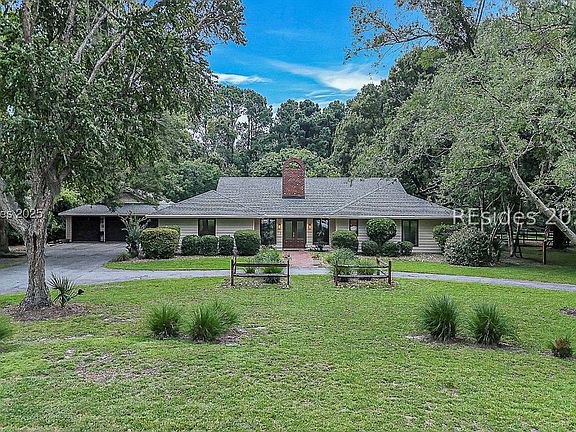 Your Invited to Timeless Comfort in this single story home that unfolds over 1.5 acres. As you enter through the great room be sure to notice the fireplace and rich wood floors that flow naturally toward expansive views of the space behind. At the heart of the home a remodeled kitchen (2021) featuring gleaming stainless-steel appliances, high end cabinetry & Silestone-topped center island, with seating for 5 and room for a sitting area or additional dining. Four spacious bedrooms 3 bathrooms (primary remodeled in 2021) , plus a dedicated office, the primary suite indulges with an extraordinarily generous walk-in closet/dressing room. Enjoy serene evenings on the vast screened porch, equipped with ceiling fans, overlooking the tranquil yard, paddock, & your private tableau of nature. This space would easily accommodate a pool. The easy access to the Green-belt riding trail is just behind with miles of scenic riding. The two-stall barn includes hot & cold running water, a wash rack, and a tack room, crafted for seamless horse care. Or reimagine the barn as a fantastic guest quarters and pool house. (most recently it has been used as extra shop space). Additional estate comforts include a separate irrigation well for pristine landscaping, a new roof (2022) for long-term assurance, a spacious 3 car garage and expansive parking area along with a circle drive way. In the Rose Hill community you will enjoy deep water access, three pools, golf club & championship golf course and pro-shop, an on sight restaurant, pickleball, tennis and & bocce courts, parks, nature trails, fishing, kayaking and the Colleton Point pavilion and covered dock each curated to complement an elevated lifestyle in a nature filled setting.