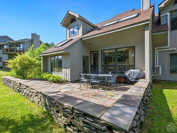 Lovely Windham Ridge townhome end unit with a garage!! Didn't you always want a bedroom for your car? When the snow starts to fall, your car will be warm and dry, and you can snuggle up by the large stone wood burning fireplace and enjoy the mountain views, no worries to be had.This 3 bedroom 2 bath townhome has a lovely open layout with large windows overlooking the cozy stone patio and seasonal mountain views. The kitchen with breakfast bar has updated counter tops, stainless steel appliances and opens to spacious dining area. The living room is warm, inviting and filled with natural light. A main floor bedroom, full bath, entry/mud room with ample storage completes this level. Upstairs you will find a large bedroom with views and a smaller second bedroom and full bath. Bonus is the open loft area which could be used as an office or extra sleeping space.Being sold fully furnished makes this one ready to go. Come take a look and join the year round fun that Windham has to offer - you will be glad you did.