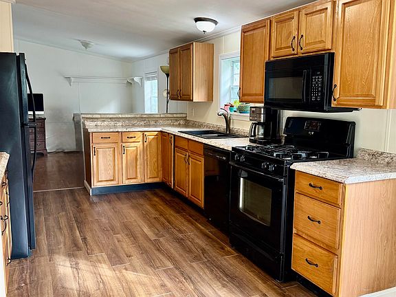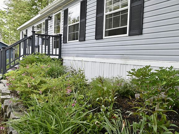 Spacious Doublewide with Private Yard and Beautiful Perennials! This freshly painted 3 bedroom, 2 bath Mobile home offers the perfect blend of comfort and convenience. Inside, you'll find a bright, open layout with laminate flooring throughout the main living areas. The kitchen opens to a small private deck, great to enjoy morning coffee, summer dinners, or entertaining outdoors. The primary bedroom features a private 3/4 bath and ample closet space, while two additional bedrooms and a second full bath offer flexibility for family, guests, or a home office. Outside, you'll love the private yard filled with beautiful perennials, a large storage shed and plenty of parking. Located in a friendly well-maintained community close to local amenities and highway. A wonderful opportunity for affordable, one-level living! Park approval required.