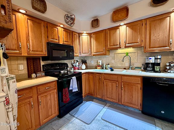 This beautifully updated 3-bedroom, 2.5-bath townhouse offers spacious, maintenance-free living in the heart of Queensbury, ideally located between Glens Falls and Lake George and just minutes from shopping and local amenities. The main level features a first-floor primary suite complete with dual closets and a stylishly renovated full bathroom with ceramic tile. Gleaming hardwood floors flow throughout the first floor, leading to a modern living room with soaring vaulted ceilings, skylights, and a cozy gas fireplace. The bright eat-in kitchen and formal dining room provide ample space for entertaining, while the updated half bath and convenient laundry closet add everyday functionality. A bonus sunroom opens through sliding glass doors to a charming outdoor patio with pavers—perfect for relaxing or hosting guests. Upstairs, you'll find two generously sized bedrooms and a full bath. Additional features include central air conditioning and heat, an in-ground sprinkler system, and beautifully maintained grounds. This turnkey home combines comfort, style, and convenience in one of Queensbury's most desirable neighborhoods.