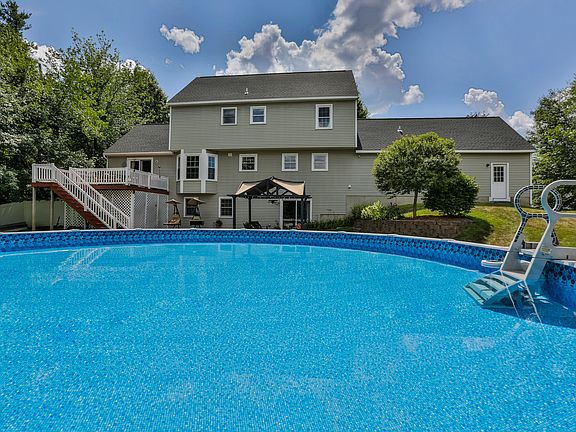 Spectacular Colonial sited on a private lot in exclusive So. Nashua neighborhood with 1.83 acres backing up to conservation land. Wonderful floor plan with graciously scaled rooms designed for modern family living and elegant entertaining. The light filled 1st floor has perfect flow for both interior and outdoor living. It features a roomy foyer, living room, formal dining room w/french doors, an expansive cook's kitchen w/gas and Island seating, an adjacent great room with fireplace. Completing the first floor is a walk in pantry/mudroom/laundry. The 2nd floor has a magnificent master bedroom suite, large walk in closet, cathedral ceiling. 3 additional good size bedrooms with ample closets and storage. The finished walk out lower level has a huge recreation/playroom/exercise space with home theatre set up and private office. Fabulous all around! Large deck overlooking pool, patio terrace, park like grounds, attached 3 car garage, central AC, lawn irrigation, pellet stove, approx. 730 sq feet of easy access attic storage in garage. The appeal of this home is further enhanced by privacy and convenience to Exit 1, easy highway access, riding and walking trails. Backyard surrounded by natural beauty. Recent upgrades - finishes and details throughout. PRICED TO SELL -This not to be missed home easily adapts to so many lifestyles, come take a look!