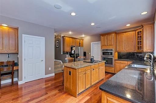 Fabulous former Model Home with all the amenities one could want.Open floor plan provides space for spectacular entertaining and fun including chef's kitchen, Florida Room, cathedral family room. First floor office.Stunning Brazilian cherry floors. Nothing missing from this home! Gorgeous pool and yard. Lots of sunlight. Terrific finished basement with second kitchen, media room, and exercise room explodes the useable living area. Close to commuter rail and country club. Abuts conservation land.