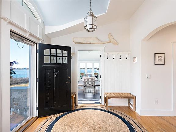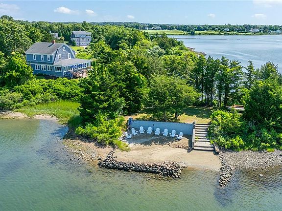 This beautifully renovated colonial sits on 7.4 acres of secluded waterfront, offering breathtaking panoramic views of a serene salt pond that leads directly to the Atlantic Ocean. Enjoy direct access to the water and a quiet stretch of shoreline, perfect for swimming, fishing, clamming, jet skiing, and boating—all just steps from your door. The over 2,500 sq ft home was meticulously renovated in 2023 and features four bedrooms, one and a half bathrooms, with potential for expansion. A wrap-around, four-season porch extends the living space, allowing you to enjoy the stunning surroundings year-round. The detached three-car garage, gas fireplace, and oversized custom outdoor shower add additional comfort and charm. With ample space and tranquility, this property also offers the possibility of a dock and the potential to explore the creation of a family compound, ideal for multi-generational living. Enjoy it as a family retreat, primary home, or take advantage of its rental investment opportunity. The serene setting, combined with close beach access and sweeping views, provides an unmatched retreat. Located in a peaceful peninsula, this property offers ultimate privacy while remaining convenient to local amenities.