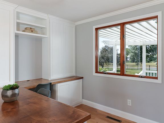 Updated 5 bedroom, 3.5 bath home situated on a picturesque lakefront cul-de-sac lot in Northpointe subdivision! This home has it all & is so spacious. The main floor offers multiple flex rooms to utilize in any way to best suits your needs! A large front room hosts a pretty bay window & brings in beautiful natural light. Another room boasts a wall of professional, custom built cabinetry just perfect for a work from home scenario. The generous sized kitchen features stainless appliances, solid surface countertops with beveled edge, plenty of cabinetry, pantry with rollouts, island with breakfast bar & table space. Adjacent to the kitchen is an incredible 4-seasons room, where you can relax and enjoy the serene surroundings. The great room features large windows that offer breathtaking views of the lake, as well as a cozy brick fireplace flanked by beautiful built-in bookcases with glass doors. Don't forget the hidden gem that is the 5th bedroom on the main floor with newly added full bath! Upstairs, you will find the enormous primary suite, complete with walk-in closet & a spa-like bathroom with double vanity, a soaking tub & 5ft tiled shower with dual shower heads. Three spacious additional bedrooms & full bath complete the upper level. The finished basement offers even more living space, with a large additional family room, 2 finished bonus room areas, as well as tons of storage space! Outside, stunning views of the lake can be enjoyed sitting under the shade of the pergola on the maintenance free deck. The sizeable, professionally landscaped lot is just under 1/2 acre & fully fenced with commercial grade black aluminum fencing (2020). 3-car garage. Huge main floor mudroom with sink. Finished Basement:2020. HVAC w wifi thermostat & Water Heater:2019. Fully added main floor full bath:2020. Mudroom Remodel:2018. 6" Gutters & downspouts installed:2019. Additional list of many other upgrades & improvements available upon request!