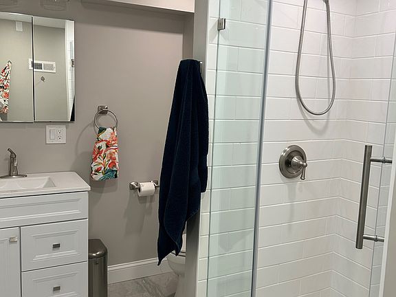 Looking for someone to rent our basement unit. Available April 1, with some flexibility. We are preferring a single renter. PLEASE READ No overnight parking available from Dec 15-April 1. You must not own a car or have another place to store it during that time period. Friendly family looking for a single tenant who is also friendly, independent and a good fit for living beneath us and our 2 young children. Ideally you want a 6 to 12 month lease, with opportunity to extend if there is mutual comfort. Intermittent guests are fine provided you are reasonably quiet, clean and respectful. We will do our best to be quiet from 9pm-7am and ask you do the same. We will also not enter your portion of the house without 24 hour notice. Sorry but no live-in children please. Features: -Entire area recently renovated in 2022/23, lightly used since then -Semi furnished (bed/sheets included) - can discuss other needed appliances such as -Private Entry -Private full bathroom -Private kitchen/pantry. The kitchen will have a refrigerator, freezer, microwave, and a portable stove with 2 burners. It will not have a dishwasher nor a stove. -Private washer/dryer -Separate office/living room area -Easy street parking from April 1-Dec 15. Unfortunately we cannot accommodate off street parking during the overnight street parking ban Dec 15-Apr 1. -Quiet, peaceful, residential area with easy access to Fells and other parks -Utilities (Wifi, Electricity) included. Home is very green with a new geothermal heat pump and solar panels. -5/10 minute drive to shopping, grocery, restaurants, Melrose MBTA Commuter Rail/Oak Grove Orange Line Important: -There is no off street parking. Stoneham has an overnight parking ban Dec15-April 1 every year. -There is an area in the kitchen where the ceiling is only 6' off the ground. Please don't apply if that will be an issue. The office, bedroom and bathroom do not have this constraint. -We are ok with cats, and small/quiet dogs. Please no large/loud animals, our daughter gets scared. We will collect a Refundable $1000 pet deposit which will only be kept if needed to restore damage to the department. -No smoking, firearms, or anything we could reasonably view as a danger to our children. -First month, last month rent and $1000 refundable security deposit due at signing. $4800 total. Additional $1000 pet deposit if you want to keep a pet. Utilities (wifi, electricity, heat, ac) included Looking for 6-12 month lease with ability to extend if mutual agreement