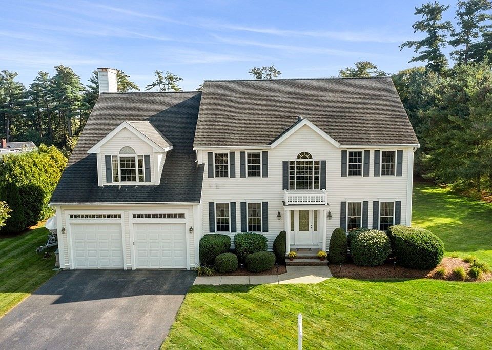 This gracious contemporary colonial could be your home for the holidays! Conveniently located just minutes from Route 128 on a quiet cul de sac in a pristine neighborhood on a half-acre level lot. A two-story entrance foyer greets you leading to an open concept first floor, ideal for entertaining. The adjoining living and dining rooms feature glistening hard wood floors, 10’ ceilings, crown molding. The spacious eat-in kitchen with center granite island and stainless appliances opens to a large sunken family room with fireplace. Completing the first floor is a half bath and three season room with mahogany floors and vaulted pine ceilings. The second floor features a large primary bedroom with an expansive walk-in closet, ensuite bathroom and reading area. Three generously sized bedrooms and large full bath with double sinks and a separate laundry room complete the second floor. The lower level offers recreation and workout spaces as well as a half bath. This house has it all!