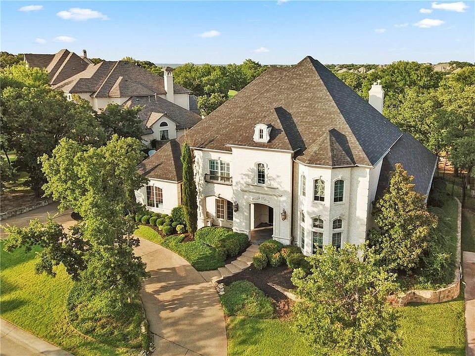 MAJESTIC ESTATE IN THE PRESTIGIOUS GATED SECTION OF TROPHY CLUB! Elegance, privacy & sophistication combine in this remarkable home graced with intricate moldings, handscraped hardwood floors, cast stone columns, coffered ceilings, 4 fireplaces, a library & wine grotto. Prepare meals in the richly appointed kitchen or make great use of the spice kitchen with an eat-in breakfast area. Unwind in the grand entertainment room boasting soaring ceilings, relax in the cozy family room or entertain in the game room with a bar area. Escape to the luxury master suite with a steam sauna & custom closet or utilize the in-law suite for family & guests. Enjoy golf course views from the covered patio with a built-in grill.