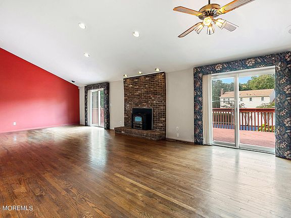 Large 3 BR ranch with a pool set in a beautiful, serene neighborhood in North Howell. Extra Large eat in kitchen boasts walls of cabinets, tons of storage with a second prep sink. Huge great room with vaulted ceiling and wood burning fireplace opens out onto expansive deck overlooking the pool. 3 good sized BR's plus 3 full baths. Primary BR has full ensuite bathroom and three closets. Laundry on the first floor. Full partially finished basement with tons of storage. Hardwood Floors throughout living areas and bedrooms. Large fenced in yard, whole house generator, oversized shed, two car garage. Solar panels keep electric bill low. House has great bones and awaits your personal touches. Requesting all offers by noon on 9/10