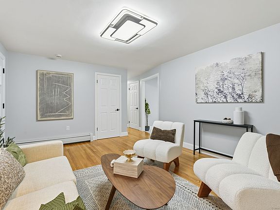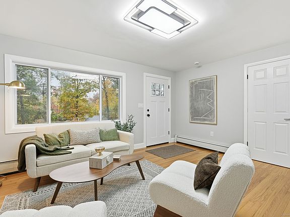 This fully renovated ranch is ready to impress! This one-level home has been redone with care, style, and quality craftsmanship. Positioned at the start of a cul-de-sac in a neighborhood of character and charm, it sits on just over a half acre. The renovation is absolutely breathtaking, from the brand-new roof, siding, gutters, new windows, and doors to the thoughtfully updated interior. The kitchen and bath have been fully gutted and beautifully redone with modern finishes. Other updates include new plumbing and refinished hardwood floors. Outside, you'll find a freshly paved driveway leading to an under-house garage, a new retaining wall with proper drainage, an inviting new walkway and front steps accented by a crisp new railing, and a newly installed patio that extends your living space outdoors right off the kitchen - perfect for relaxing or entertaining in this picturesque spot. Additional highlights include a boiler from 2014, and a water heater from 2020. This is truly turnkey, single-level living at its best - modern, bright, and move-in ready, with everything already done for you.