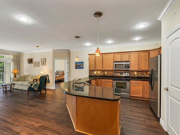 Welcome to Walden Woods, a premier 55+ community in the heart of Nashua. This spacious 2-bedroom, 2-bath condo is a rare 2nd-floor unit offering exceptional privacy with peaceful wooded views. The home features an open-concept layout with 9-foot ceilings, crown molding, and a bright living/dining area that opens to a private covered balcony with a bonus storage closet. The chef’s kitchen is beautifully finished with granite countertops, stainless steel appliances, a pantry, and plenty of counter space. The primary suite boasts abundant closet space and a large en suite with a walk-in shower, double vanity, linen closet, and convenient in-unit laundry with side-by-side washer and dryer. A generously sized second bedroom and full bath are located on the opposite side of the unit, perfect for guests. Community amenities include a clubhouse, underground heated garage with storage, elevator, and secured building entry. Additional highlights: central A/C, natural gas heat, public water/sewer, and a low condo fee covering landscaping, building maintenance, snow removal, and water/sewer. One occupant must be 55+, and one pet under 30 lbs is welcome.