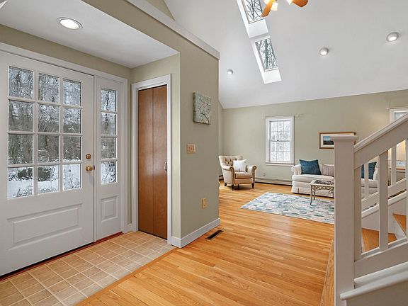 Located in one of Exeter’s most desirable neighborhoods, Marshall Farms Crossing, this bright and meticulously maintained Cape offers 2800 sqft of living space featuring 9 rms, 4 BR's, and 3 BA's. The 1st flr boasts a spacious open flr plan, beginning w/ a stunning LR w/ large windows, cathedral ceiling, and a beautiful brick fplc framed by elegant wainscoting and a charming mantel. The formal DR leads to a large, fully applianced kitchen, complete w/ newer SS applcs, double sink, and a generous dining area w/ a slider to the 3-season porch, backyard, and gardens. Adjacent to the kitchen, the inviting FR also offers a slider to the 3-season porch, a 2nd brick fplc w/ intricate woodworking details and mantel, creating a warm and welcoming atmosphere. The 1st flr also includes a FBA w/ laundry, and a versatile home office or BR. Upstairs, the expansive primary BR features 2 large closets and an ensuite BA, offering a private retreat. 2 additional generously sized BR's and a 3/4 BA complete the 2nd flr. The full, dry unfinished basement w/ exterior access provides ample storage space. This home is within walking distance of Brick Yard Pond, Brick Yard Park, and Kids Park. Ideally located near downtown Exeter, offering dining, shopping, the Amtrak Train Depot, the YMCA, town pool, major highways, and beaches. Additionally, this property is located close to the highly rated Exeter Schools and Phillips Exeter Academy. A must see!