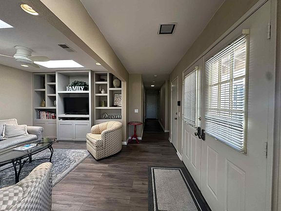 Available through December 2025 - Step through the welcoming private courtyard into this sought-after A Plan, thoughtfully updated with the atrium converted into a versatile den or family room. Inside you'll find 2 spacious en suite bedrooms, a large kitchen with granite counters and breakfast bar, a separate dining area, and a cozy living room with fireplace.